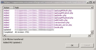 This is great for the developer, but what's the benefit for regular users then? To be able to understand this, you'll have to understand how releases work: the dev team decides that it's time to release a new package, so the packager (the dev team member who is in charge of creating the package for end users) will perform a checkout from the SVN repository to make sure that his local files are up to date. Then he creates an archive and uploads that archive to the downloads section of the coppermine webspace, where the end user can get that package. In each of the files inside the package, the revision numbers still show through, but don't have an impact on the release, so you (the end user) don't need to worry about the revision numbers in the first place - after all, you the package you have downloaded has got a version number, that's all you need to know. However, development continues - developers are still fixing bugs in the repository, so the revision count of the files in the svn repository will increase. There won't be a new package release just because just one file in the repository changed - usually, several changes (=fixes) will be rolled into one when a new package is being released. Now, what's the catch? Well, between official package releases, you can still get the most recent files from the svn repository - that's recommended for users who are concerned about security, but as well if you experience an issue with your gallery and read about a fix on the bugs board that a developer has reported to be fixed in the svn. If you want to get the fix, head over to the web SVN, browse it and get the file that contains the fix. Use it as a replacement for the file on your serve that was buggy. If you do that, versioncheck will report your file on the server to be newer than expected (because it actually is newer than the file that went into the released package).
